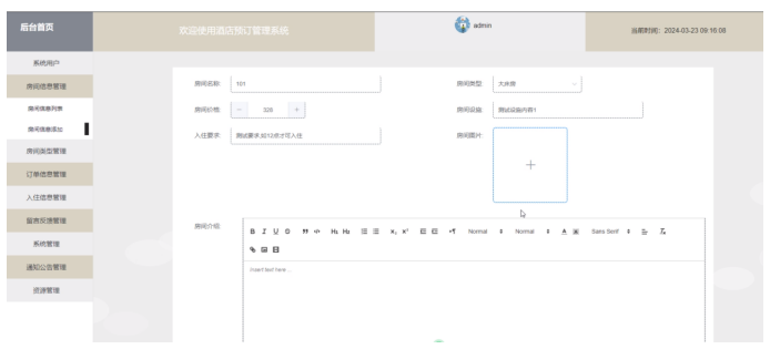 房间信息管理:管理员可以管理系统中的房间信息,包括添加新的房间、编辑已有房间信息、删除房间等操作。