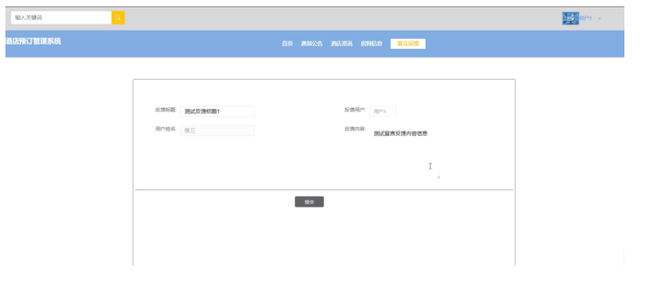 留言反馈:普通用户可以对酒店或服务进行留言反馈,提出意见和建议。
