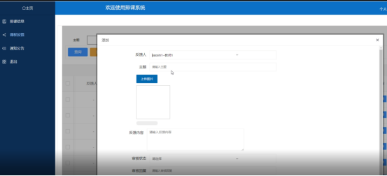 (4)课程反馈:在后台的“课程反馈”界面中可以提交课程反馈信息,管理员在“课程反馈”界面可以进行查看、审核;
