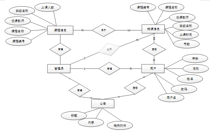 下面是整个排课系统中主要的数据库表总E-R实体关系图。