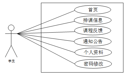 根据上一节功能分析,可以得出系统的用例,学生角色用例如图2.1所示。