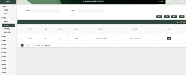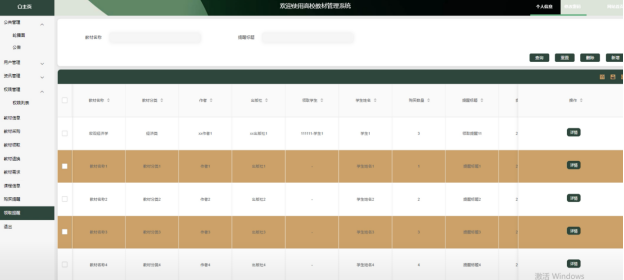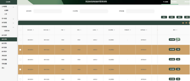 (4)教材信息:管理员可以对教材信息进行增删改查。