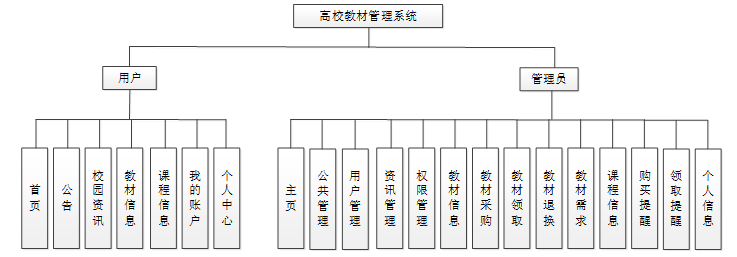 高校教材管理系统我划分为了用户管理模块和管理员模块这两大部分。