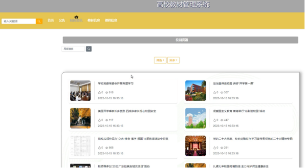 (3)资讯管理:管理员可以对高校教材管理系统中的校园资讯、资讯分类信息进行发布和维护。