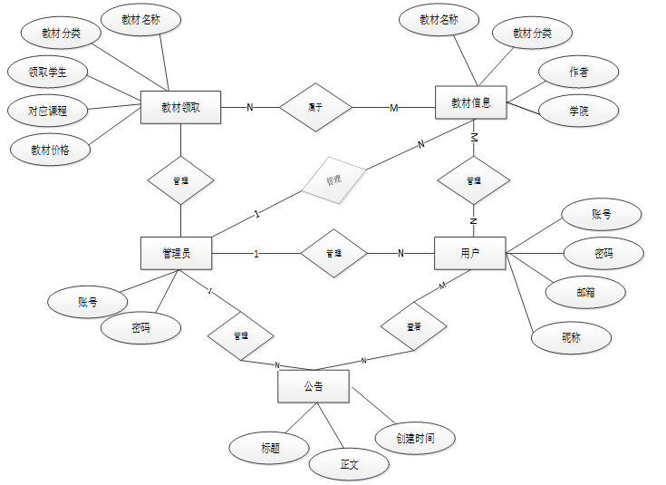 下面是整个高校教材管理系统中主要的数据库表总E-R实体关系图。