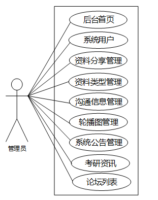 考研信息共享交流平台中管理员角色用例图如图2.2所示: