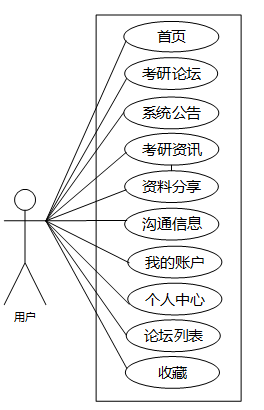 考研信息共享交流平台中用户角色用例图如图2.1所示: