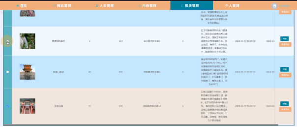 (4)模块管理:在“模块管理”这一菜单下可以对系统当中的系统用户操作的所有信息进行管理,包含了景点数据、热门景点。