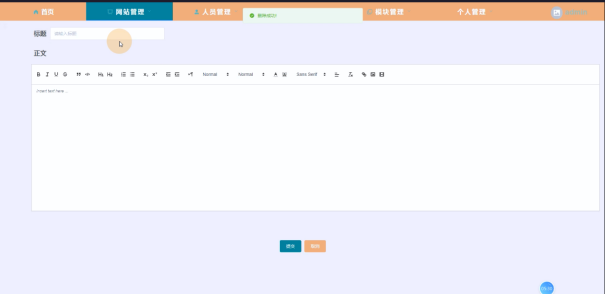 在主页左侧菜单栏中点击“公告管理”按钮,再从二级目录中点击“新增公告”按钮,进入到新增公告界面。在此处公告可以添加公告的标题。