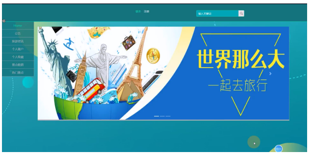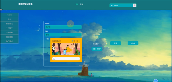 (2)查看旅游数据可视化的首页信息:旅游数据可视化的首页信息包含了首页、公告、旅游资讯、个人账户、个人收藏、景点数据、热门景点。