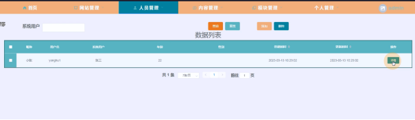 (2)人员管理:管理员可以对旅游数据可视化中的管理员以及前台注册的系统用户进行审核管理。