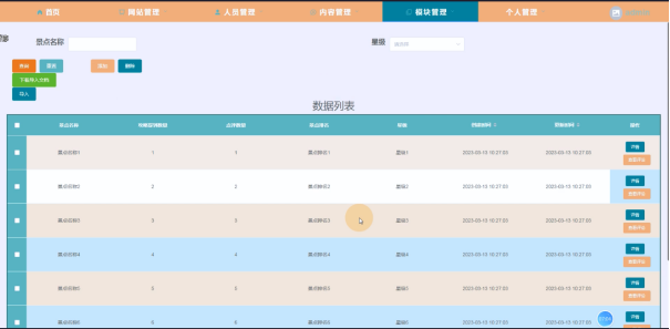 管理员执行景点数据管理,并可以操作相关内容,例如添加,查看,编辑和删除。通过单击“添加景点数据”,可以通过景点数据添加界面添加详细信息并添加景点数据注释。单击查看字段级别链接以查看有关所选字段级别的信息。然后单击“提交”跳转重返到添加页面。添加成功后的信息会载入到景点数据查询列表中,管理员可进行编辑以及修改。