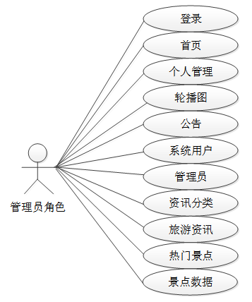 旅游数据可视化中管理员角色用例图如图2.2所示: