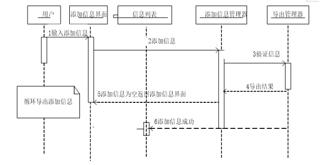 管理员以及用户登录后均可进行添加信息操作,添加信息模块顺序图如图4-4所示。