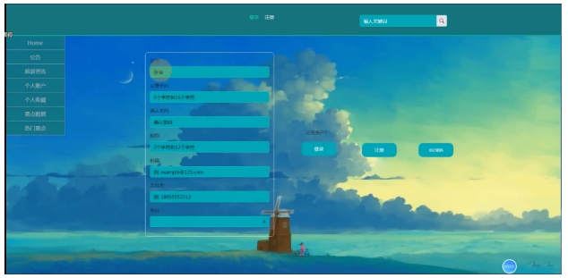 (6)个人账户:在前台点击“个人账户”可以对个人资料+密码修改+自己收藏的信息进行管控。