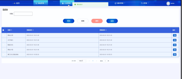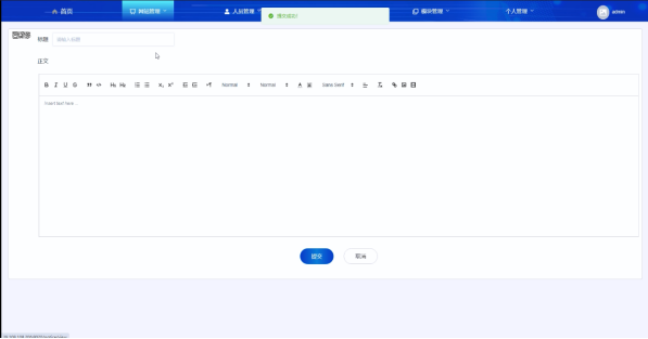 在主页左侧菜单栏中点击“公告管理”按钮,再从二级目录中点击“新增公告”按钮,进入到新增公告界面。在此处公告可以添加公告的名称、标题、发布时间。