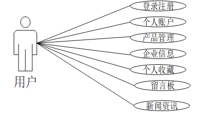用户进入系统可以进行首页登录注册、留言板、系统公告、新闻资讯、个人账户、个人收藏、企业信息、产品管理、个人中心功能等。会员用户用例如图3-8所示。