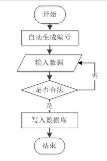 用户成功登入系统后就能够实现增加数据的操作,增加数据的编号是特定的,系统生成,用户不能随意填写,除了编号以外,其他增加信息用户自己填写,填写后的信息经过系统验证,验证合法通过就显示增加数据成功了,相反的话,就没有增加成功,图2-3显示的就是在增加数据时的流程。