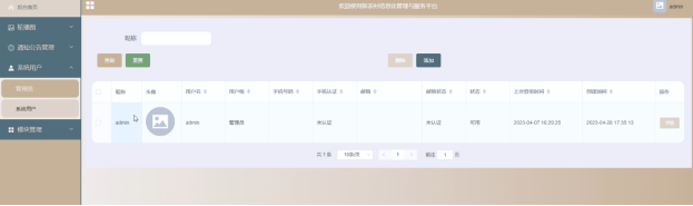 (3)系统用户:管理员点击“系统用户”菜单可以对系统中存在的用户进行管理,包含了管理员用户和系统用户。