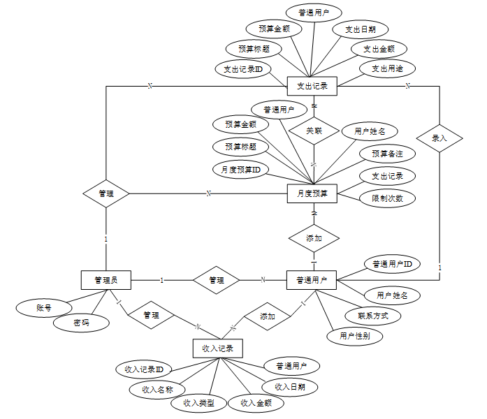 下面是整个个人财务管理系统中主要的数据库表总E-R实体关系图。