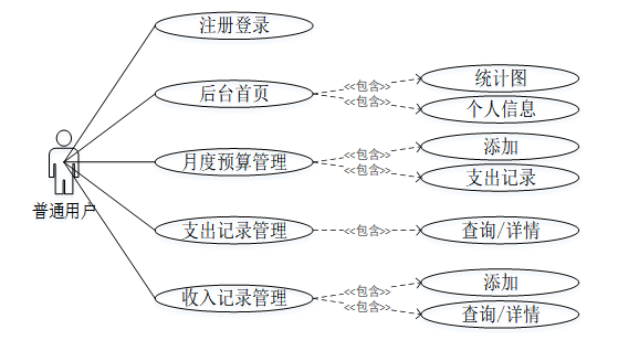 图3-1个人财务管理系统普通用户角色用例图
