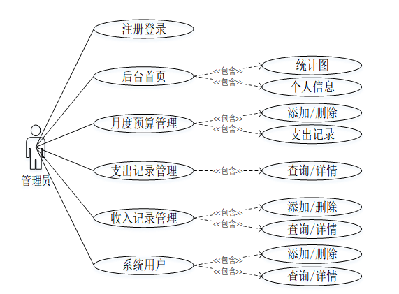 图3-2个人财务管理系统管理员角色用例图