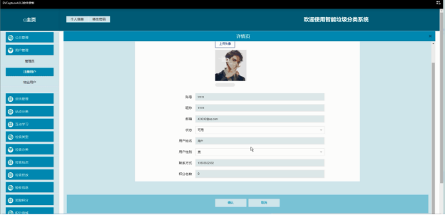 - 验收信息:管理员通过验收功能确认用户投放的垃圾是否符合分类要求,记录验收结果。对于正确分类的用户,系统将自动奖励积分。