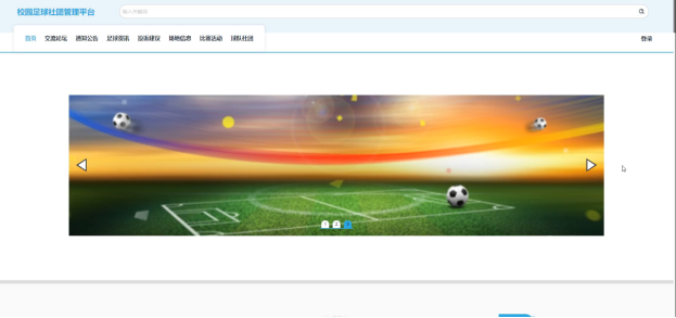 - 首页:首页展示了一个动态轮播图,提供最新足球资讯,显示场地信息,列出即将举行的足球比赛活动,以及展示球队和社团的相关信息,方便用户快速了解社团动态。