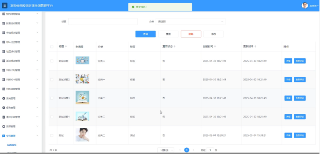 - 比赛活动管理:管理员可以添加新的比赛活动,并对现有的活动进行查询、删除和查看评论,确保比赛活动的顺利进行。