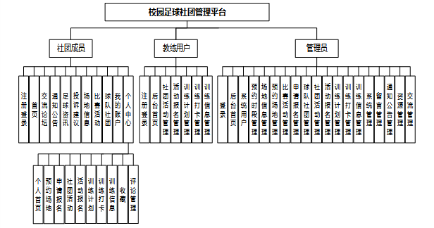 校园足球社团管理平台划分为了前端模块和后端模块两大部分。