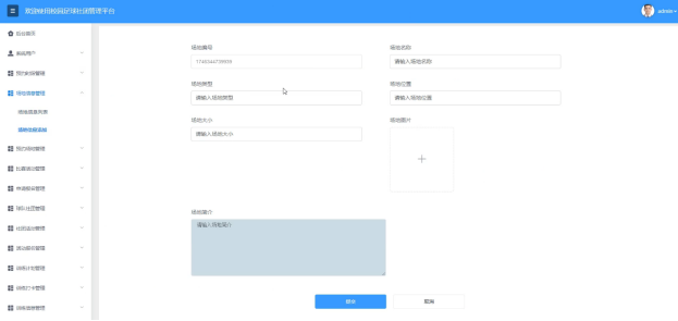 - 场地信息管理:管理员可以添加新的场地信息,并对现有的场地信息进行查询、删除和查看评论,确保场地信息的准确性和及时更新。