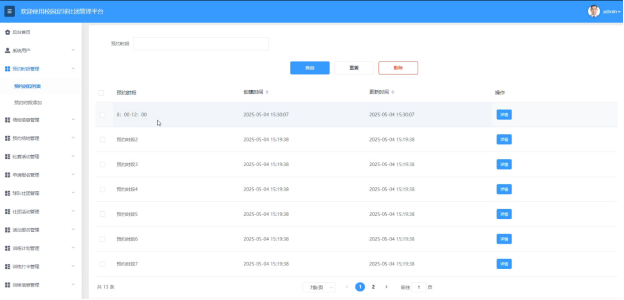 - 预约时段管理:管理员可以添加新的预约时段,并对现有的时段进行查询和删除操作,同时也可以查看每个时段的详细信息。