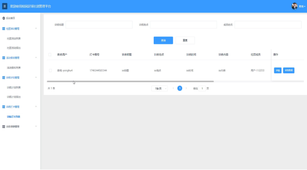 - 训练信息管理:管理员可以查询和删除训练信息,并查看每个训练的详细情况,帮助管理员更好地管理训练活动。