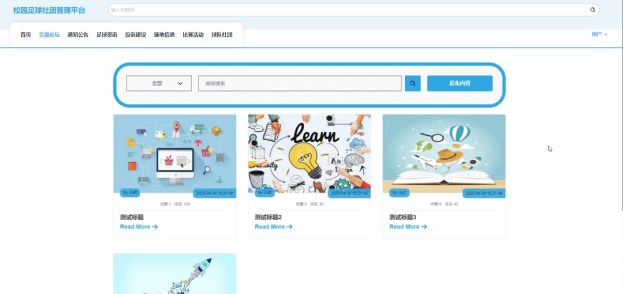 As campus sports activities continue to develop, traditional manual management methods can no longer meet the growing operational needs of football clubs. The design and implementation of the campus football club management platform is based on this context, using the Spring Boot framework and Java language, combined with the MySQL database, to build an efficient and stable information management system. The system is divided into three roles: club members, coach users, and administrators, covering core functional modules such as venue reservation, match management, training check-ins, communication forums, and information release, providing comprehensive support for campus football club activities.