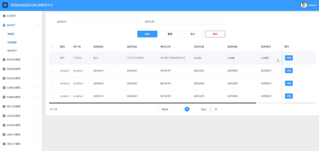 - 系统用户管理:管理员可以添加、查询、删除社团成员和教练用户,并且可以查看他们的详细信息。