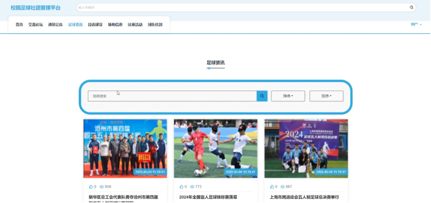 The platform enhances system maintainability and scalability through a front-end and back-end separation architecture, while ensuring data security and processing efficiency. Club members can complete operations such as registration, commenting, bookmarking, and leaving messages online. Coaches can set training plans and check in data, while administrators have backend functions for user management, resource management, and event review. This system effectively improves the management level and information interaction efficiency of campus football clubs, providing a viable solution for the digitalization of university sports.