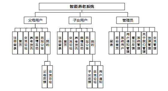 智能养老系统划分为了前端模块和后端模块两大部分。