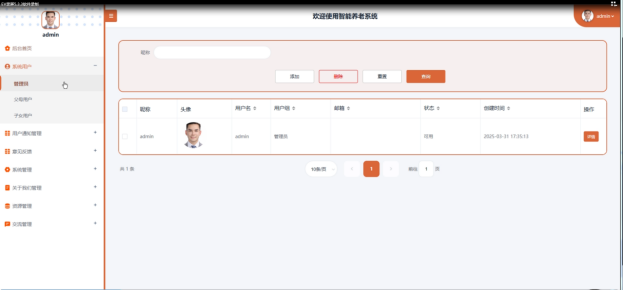 后台首页:管理员登录后台首页后,可以直观地看到系统的整体运行状况,包括用户活跃度、最新发布的养老资讯概览以及即将进行的活动提醒。