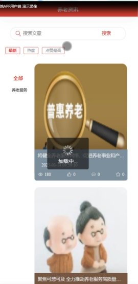 养老资讯:网站提供最新的养老资讯,涵盖健康、饮食、活动等多方面内容。用户可以对感兴趣的文章进行点赞、收藏和评论,与更多人分享用户的见解。