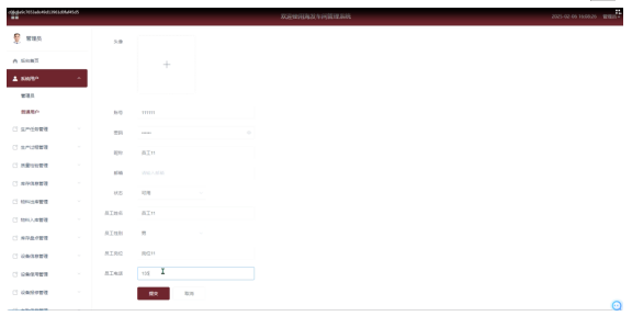 - 后台首页:.管理员后台首页功能丰富,展示生产过程统计图和考勤信息统计图,帮助管理员直观了解工厂车间运营情况。