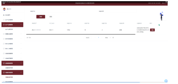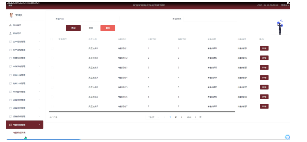- 考核信息管理模块:也提供了添加、查询、重置、删除和详情查看功能,为管理员提供了全面的员工考核管理工具。