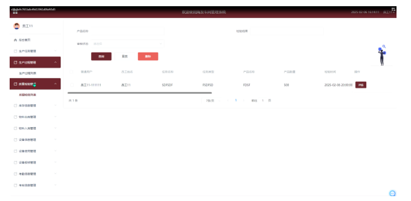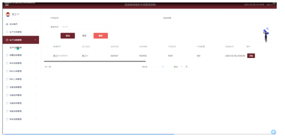 - 生产过程管理:在生产过程管理模块,管理员可以进行查询、重置、删除、详情查看以及质量检验等操作,全面把控生产流程。