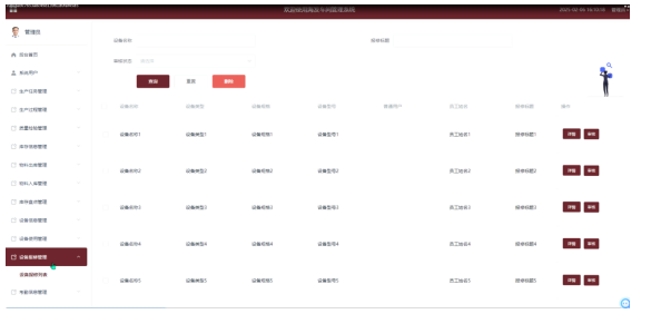 - 设备信息管理:用户能够执行查询、重置、查看详情、使用、报修等操作,以便全面了解设备信息并进行维护。
