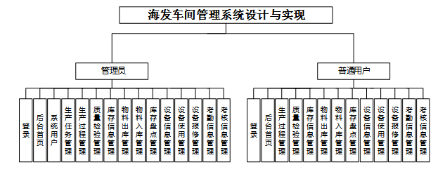 通过对应的功能做了需求分析以后该海发车间管理系统的各角色根据使用该系统可以划分为管理员、普通用户具体如下所示。