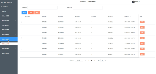 - 预算支出管理:在预算支出管理模块中,管理员可以删除不再需要的预算支出记录,并查询特定支出的详细信息。