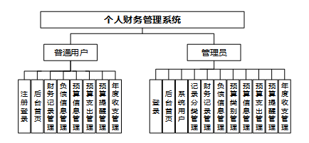 个人财务管理系统划分为了前端模块和后端模块两大部分。