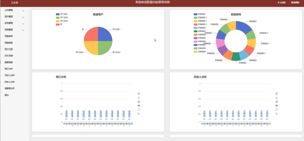 - 后台主页:呈现数据统计图,让管理员一目了然民宿的经营状况,包括收入情况、预订情况等关键指标。