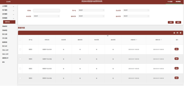- 权限管理:管理员可以查看和管理所有用户的权限列表,确保每个用户都有适当的访问权限。