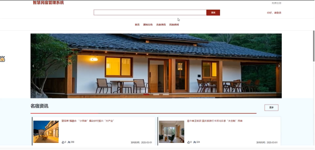 - 首页:用户可以欣赏到精美的轮播图,这些轮播图展示了民宿的美丽风景和舒适的居住环境,让用户在进入系统的一瞬间就能感受到民宿的魅力。