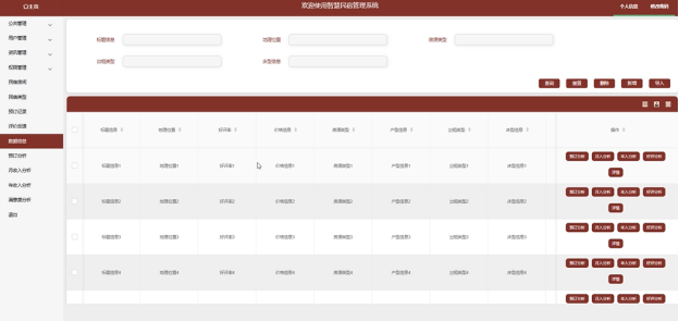 - 数据信息:管理员可以对民宿的各类数据信息进行查询、重置、删除、新增、导入和分析,以支持决策制定。